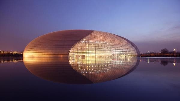 Là tác phẩm của kiến trúc sư người Pháp Paul Andreu,nhà hát lớn quốc gia Trung Quốc còn được gọi bằng cái tên “Quả Trứng”. Công trình này chính thức khánh thành vào năm 2007 với 3 thính phòng rộng lớn.