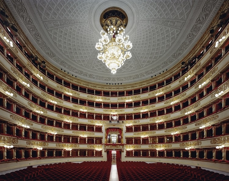 Teatro alla Scala của Milan có lẽ là nhà hát opera nổi tiếng nhất thế giới, từng diễn ra những vở opera nổi tiếng nhất. Nhà hát được xây dựng vào năm 1778 với bốn tầng với các phiên bản riêng biệt, đó là Rossini, Bellini, Donizetti và Verdi. Một trong những điểm nổi bật nhất trong thiết kế của nhà hát La Scala là kênh lõm dưới sàn gỗ của dàn nhạc; điều này khiến cho chất lượng âm thành của nhà hát trở nên tuyệt vời.