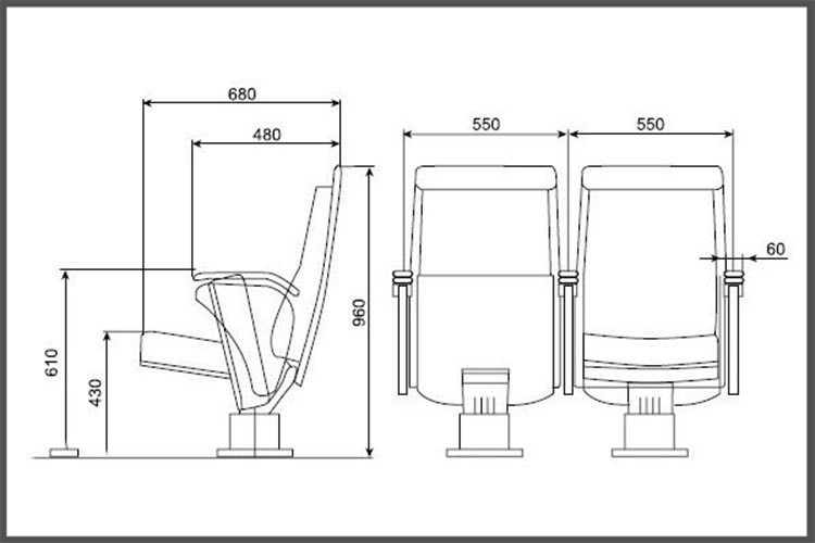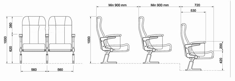 Các nhà sản xuất đã nghiên cứu rất kĩ và đưa ra các thông số quy định về kích thước về ghế hội trường như sau: